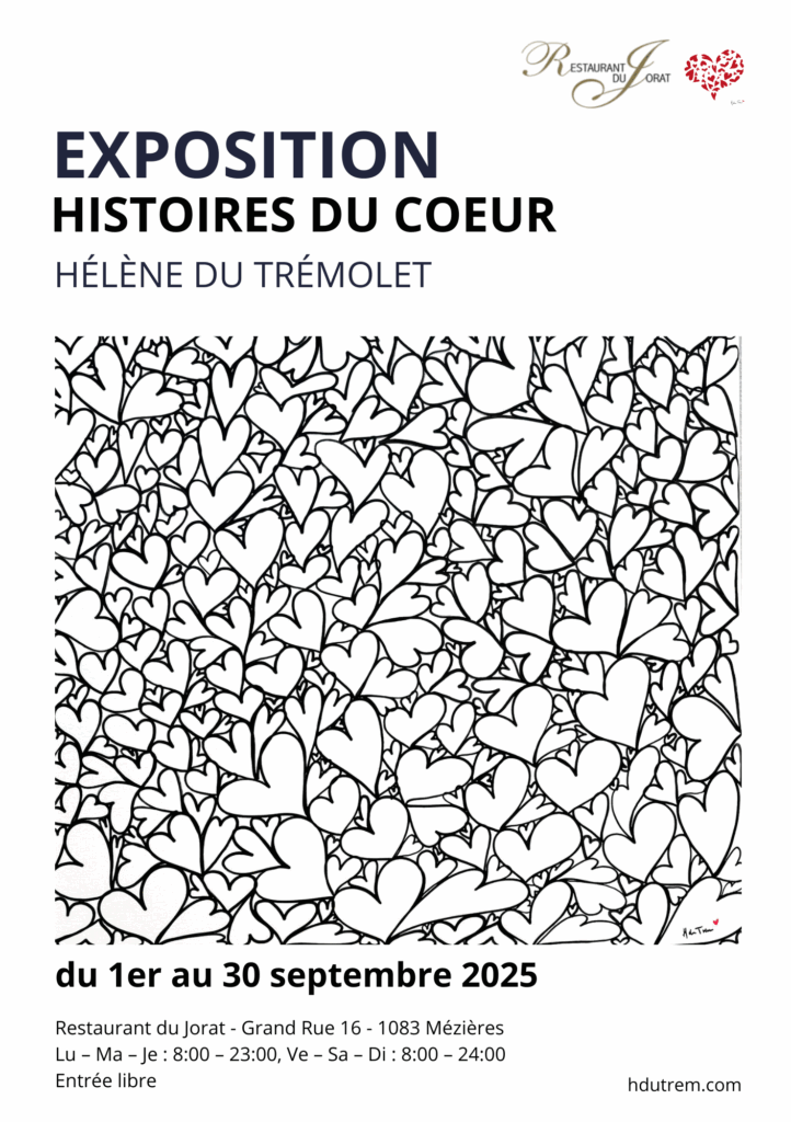 Accueil/Les Coeurs du Jorat Les Coeurs du Jorat du 1er au 29 septembre 2025 et du 3 février 2026 au 4 mai 2026 au Restaurant du Jorat à Mézières